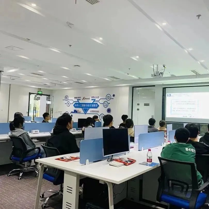 其次,未来人工智能计算中心实训基地高校实训讲师阮念山现场为学生进行《人工智能技术应用及人才需求》的分享会,通过不同角度为学生讲解并分析人工智能的定义、人工智能的主要应用领域、以及人工智能的发展前景,深入浅出的讲解帮助学生深入掌握人工智能技术。